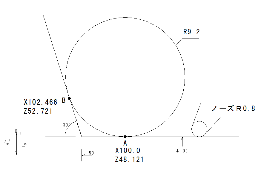 計算した座標値にノーズR補正量をプラス、またはマイナスする。